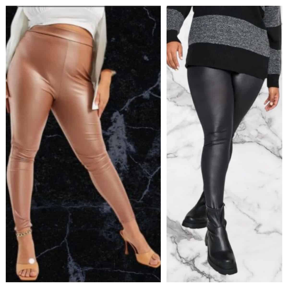 Featuring a leather look coating and either a brown or black colour, these leggings are a great addition to any wardrobe. The accents add an element of sophistication to the design. Perfect for plus-sized women, these leggings are sure to make you stand out from the crowd.